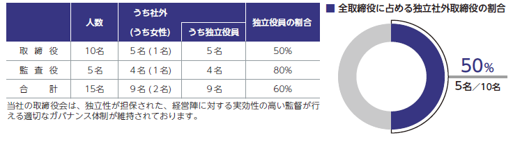 1. 取締役会の構成について、メンバーの知見・経験は十分な多様性を備えており、人数規模や社外取締役の割合についても概ね現状において適切であるものの、今後は、女性取締役の増員や、他業界経営経験者の登用等を通じ更なる多様性確保を図ることは有意義。