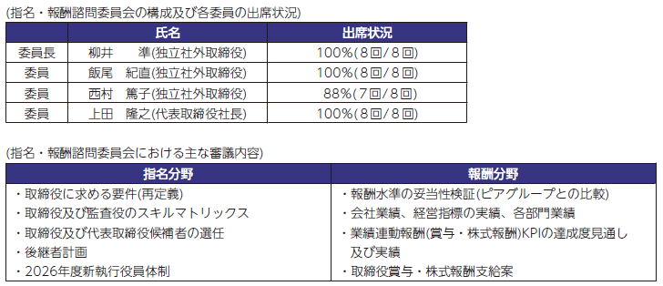 本事業年度における同委員会の構成、各委員の出席状況及び主な審議内容については、以下のとおりです。