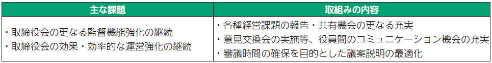 2024年度に係る実効性評価で抽出された課題を踏まえ、2025年度は以下の取組みを行ってまいりました。