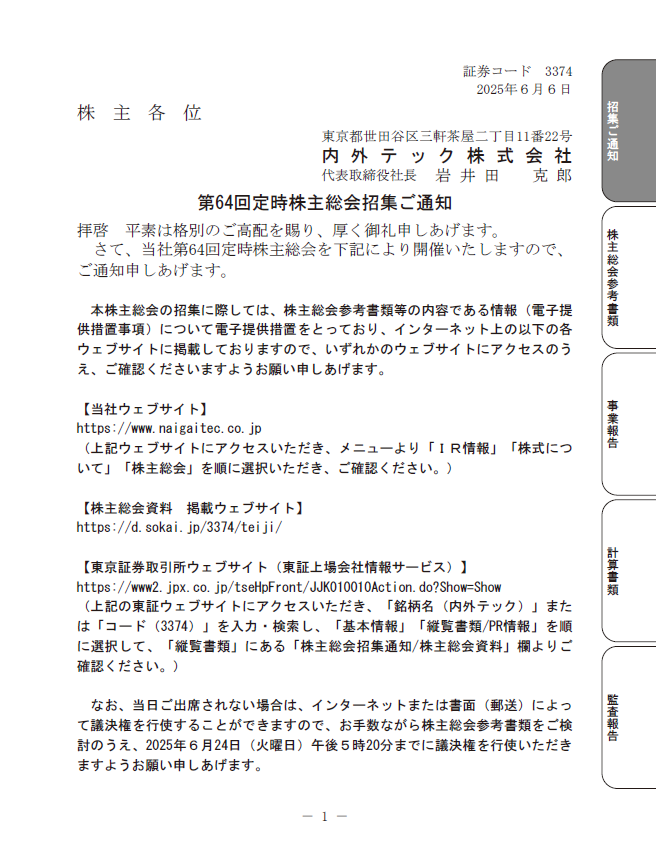 2.村山憲二氏、新井茂明氏及び泉温子氏は社外取締役候補者であります。各氏は現に当社の社外取締役であり、その在任期間は、本総会終結の時をもって、村山憲二氏が7年、新井茂明氏が5年、泉温子氏が1年であります。