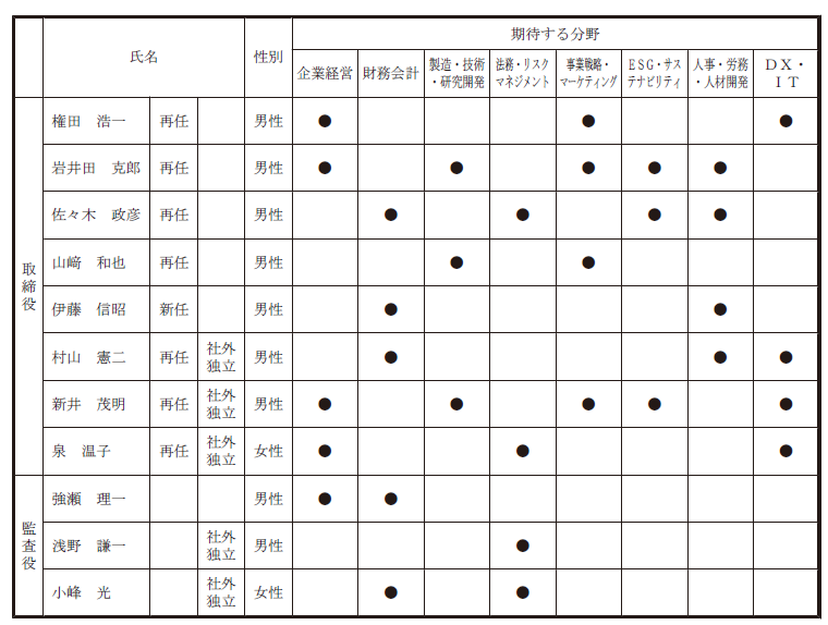 (ご参考)取締役及び監査役のスキル・マトリックス