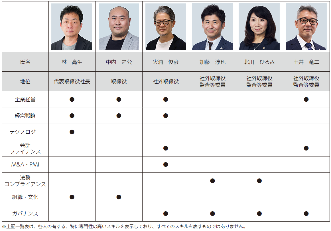 取締役会の役割・責務を実効的に果たすこと及び経営戦略・経営計画の達成に向けて、当社にとって強化すべきスキルにかかる人材確保を進めてまいりました。引き続き、当社の持続的な成長を支える人材の確保に努めてまいります。