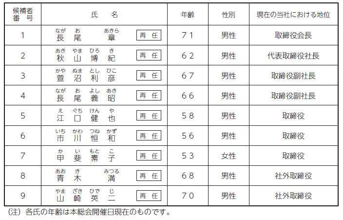 8. 当社は、青木満、山崎英二の両氏を株式会社東京証券取引所の定めに基づく独立役員として指定し、同取引所に届け出ております。なお、両氏の選任が承認された場合には、引き続き独立役員とする予定であります。