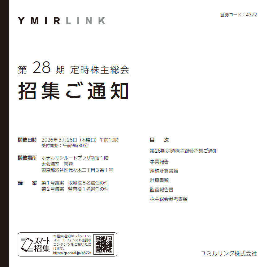鏑木 祥介氏を社外取締役候補者とした理由は、イノテック株式会社の常務取締役等を歴任し、長年にわたるベンチャー企業の経営経験及びIT業界に関する深い見識を有していることから、当社の経営に提言をいただくことを期待したためであります。