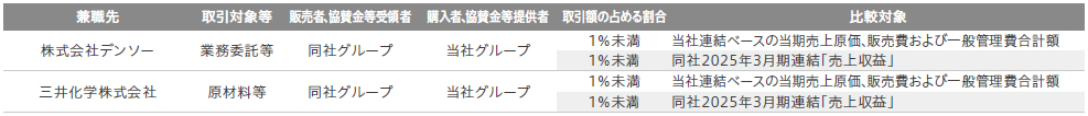 候補者と当社との特別の利害関係等 後藤靖子氏は、株式会社デンソーおよび三井化学株式会社の社外監査役を兼職しており、当社と兼職先とは以下の関係があります。