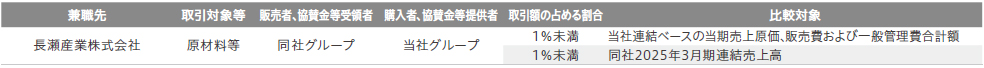 候補者と当社との特別の利害関係等 野々宮律子氏は、長瀬産業株式会社の社外取締役を兼職しており、当社と兼職先とは以下の関係があります。