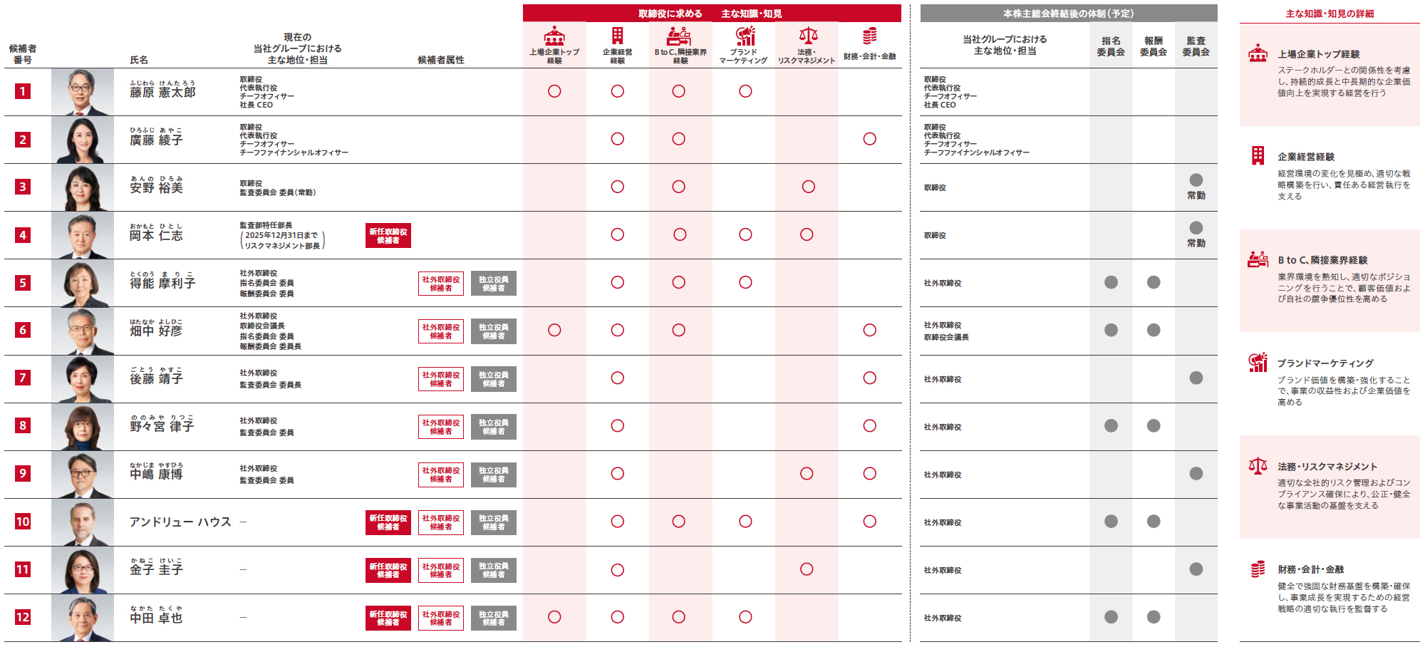 取締役候補者一覧