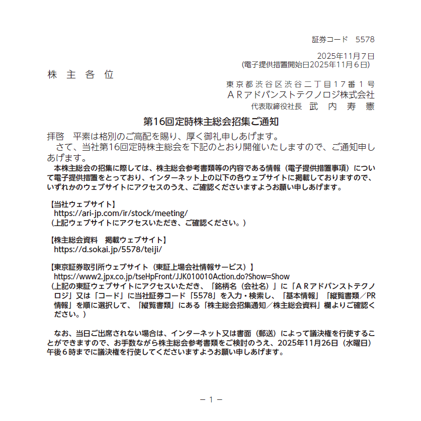 招集ご通知