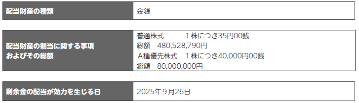 なお、A種優先株式に対する配当につきましては、発行時に定めた所定の計算により、以下のとおり実施いたしたいと存じます。