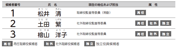 2.土田繁氏と檜山洋子氏は、社外取締役候補者であります。