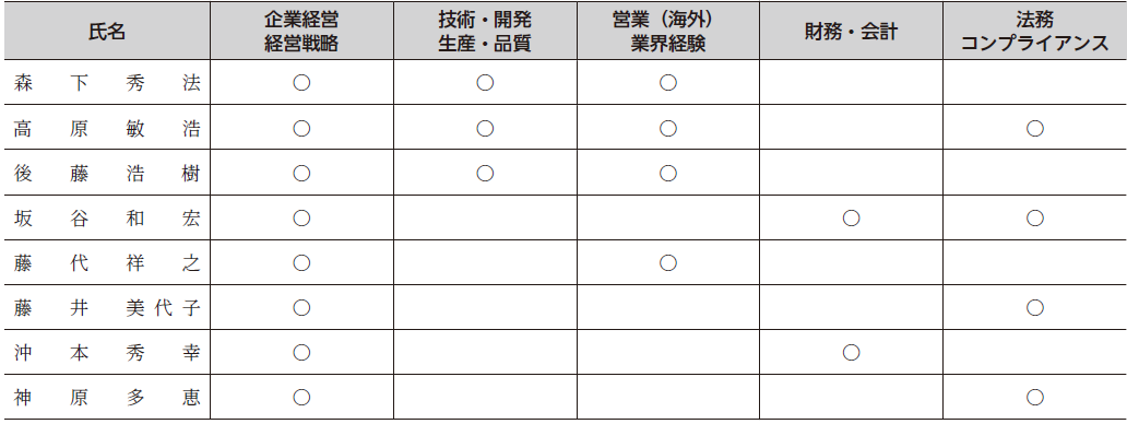 本招集ご通知記載の候補者を原案どおりご選任いただいた場合の取締役会のスキルマトリックスは、以下のとおりとなります。