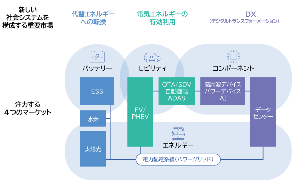 世界経済は、当連結会計年度においても地政学的リスクの高止まりや米国の政策不確実性の高まり、一部通貨の値動きが不安定になるなどの影響で、不透明な状況が続きました。一方で、主要国による利下げを含む広範な金融緩和が景気の底割れを防ぎ、地域によっては回復の兆しが見え始めております。脱炭素化の世界的な潮流は、企業の設備投資を牽引し、2025年のクリーンエネルギー関連投資は過去最高水準に達すると見込まれております。また、自動車の電動化がさらに進展し、EVの普及が進んでおります。この変化に伴い、電源技術には高効率化が求められ、小型・軽量化が進む一方、コスト削減や信頼性確保が次の焦点となっております。