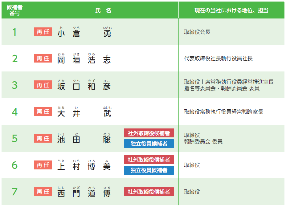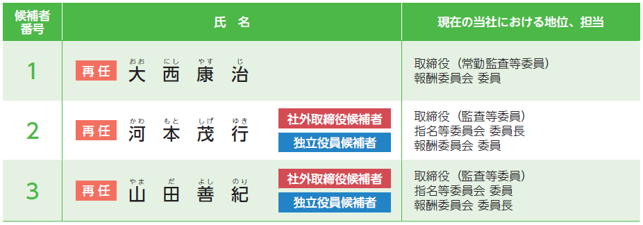 2. 河本茂行、山田善紀の両氏は、社外取締役候補者であります。