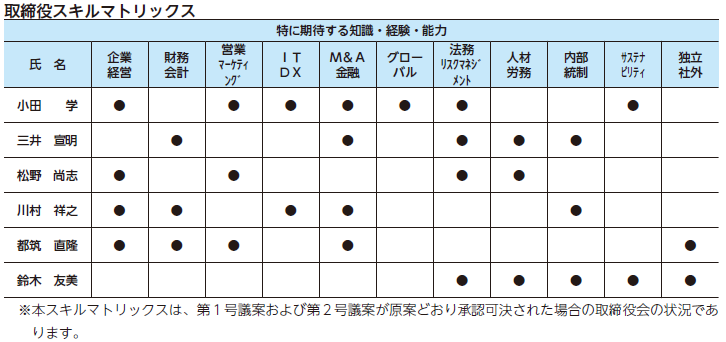 <ご参考>取締役会の多様性(スキルマトリックス)