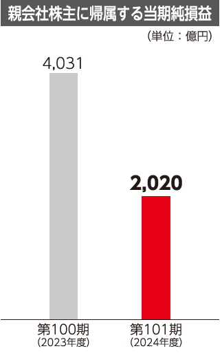 この結果,親会社株主に帰属する当期純損益は,前年度と比べ2,010億円減少し2,020億円の利益となりました。