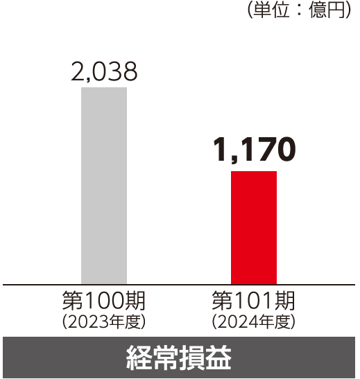 なお,期ずれを除いた連結経常損益は,2,640億円程度の利益と,前年度と比べ1,070億円程度の減益となりました。
