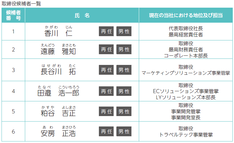長谷川拓氏は、インターネット業界やeコマース業界における豊富な経験と知見を有し、当社の既存事業及び新たな事業領域の拡大に貢献しており、取締役としての役割を適切に果たしております。以上のことから、同氏を引き続き取締役として、選任をお願いするものであります。