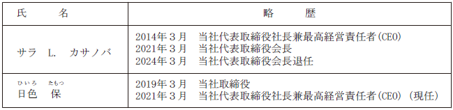 2024年3月26日をもって取締役を任期満了により退任されたサラ L. カサノバ氏及び本総会終結の時をもって取締役を任期満了により退任される日色保氏に対し、取締役在任中の労に報いるため、当社所定の基準に従い、相当額の範囲内で退職慰労金を贈呈することといたしたいと存じます。