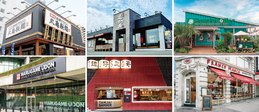 「Marugame Udon」(丸亀製麺の海外ブランド)、「Tam Jai」(スパイシーヌードル)、「Franco Manca」(ピザ)、「Wok To Walk」(タイ風ファストフード)などの業態を30以上の国・地域で直営店およびFC等で展開出店しています。