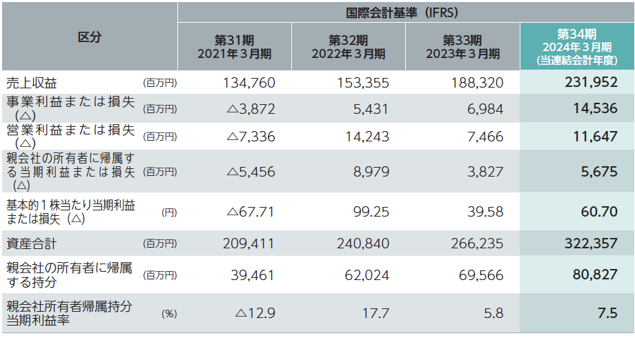 これらの取り組みにより、売上収益は1,148億56百万円(前期比12.5%増)と過去最高となりました。原価、人件費、広告宣伝費も増加しましたが、増収で吸収し、事業利益も過去最高の183億51百万円(前期比57.9%増)と大幅な増益となりました。