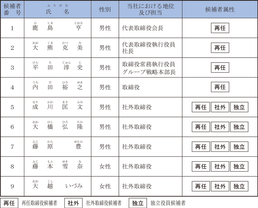 - 各候補者と当社との間には、特別の利害関係はありません。
