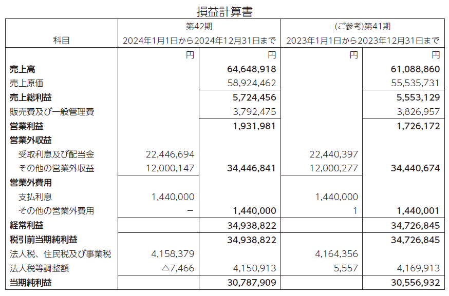 私は、2024年1月1日から2024年12月31日までの第42期事業年度の会計監査をいたしました。その方法及び結果につき以下のとおり報告いたします。