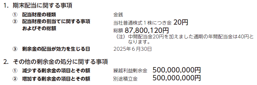 2025年2月26日の定時株主総会において、次のとおり決議を予定しております。