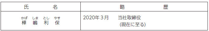 取締役樺嶋利保氏は、本総会終結の時をもって任期満了により退任されます。