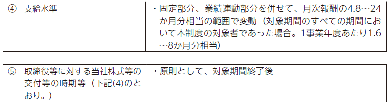(4)取締役等に対する株式交付等の時期および方法その他株式の交付条件の概要