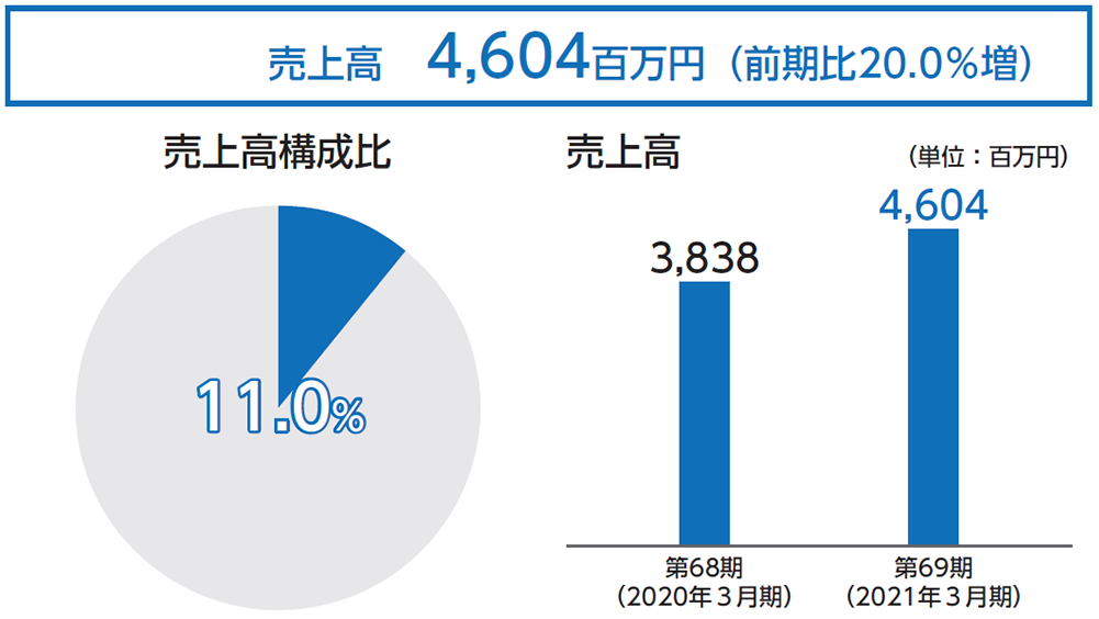 シリコンウェハー向け製品につきましては、半導体業界の高い稼働に支えられ、ラッピング材の売上高は4,604百万円(前期比20.0%増)となりました。