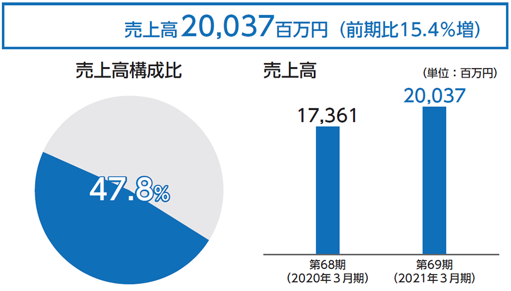 こうした状況下、当連結会計年度の業績は、売上高41,956百万円(前期比9.2%増)、営業利益7,639百万円(前期比27.2%増)、経常利益7,709百万円(前期比24.8%増)、親会社株主に帰属する当期純利益5,607百万円(前期比31.3%増)となりました。