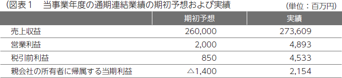 かかる諸施策実施の結果、当事業年度の通期連結業績は、全社での緊急対策への取り組みにより、期初業績予想(2020年8月3日公表)を上回り、前年同期比では減収となりましたが、すべての利益指標で増益となりました(図表1参照)。