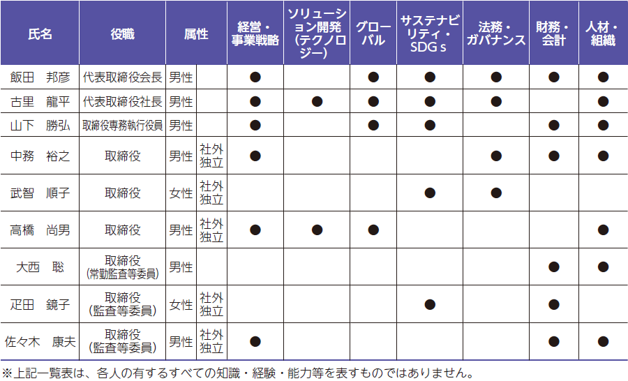 【ご参考】株主総会後の取締役会のスキルマトリックス